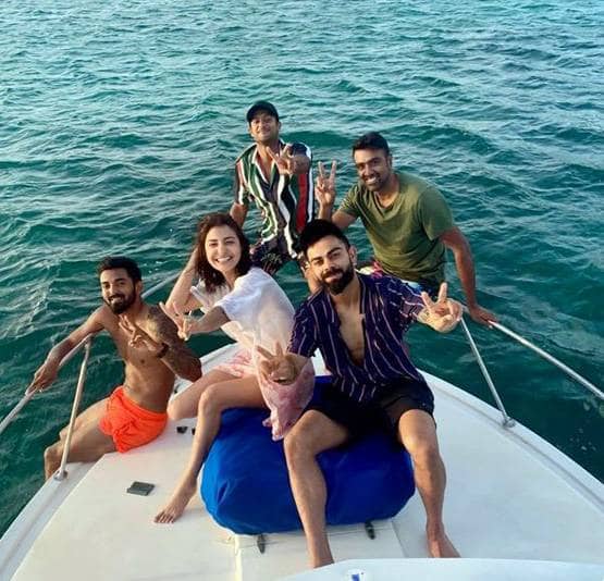 पावर कपल विराट कोहली और अनुष्का शर्मा वेस्टइंडीज में क्वॉलिटी टाइम बिता रहे हैं. कपल की यॉट पार्टी की एक तस्वीर वायरल हो रही है, जिसमें विराट-अनुष्का के साथ क्रिकेटर आर अश्विन, मयंक अग्रवाल और केएल राहुल नजर आ रहे हैं.