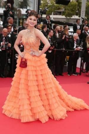 ऑरेंज कलर का बिल्विंग सिल्हूट रफल्ड गाउन में उर्वशी बेहद खूबसूरत दिख रही हैं. अपने लुक को ग्लैमरस रखते हुए एक्ट्रेस ने ब्राइट आई मेकअप, ब्लश चीकबोन्स और ग्लॉसी लिपस्टिक कैरी की, वहीं बालों का हाई बन उनके लुक को कंप्लीट करता नजर आया.Cannes film festival 2023