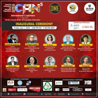 ICAN 5, समावेशिता, अभिसरण, वैकल्पिक वार्ता पर विश्व के पहले 7-दिवसीय हाइब्रिड अंतरराष्ट्रीय सम्मेलन का उद्घाटन 01 जुलाई, 2022 को दुनिया भर के राष्ट्रीय और अंतर्राष्ट्रीय मीडिया शिक्षकों, विद्वानों, शोधकर्ताओं और पेशेवरों की उपस्थिति में किया गया। यह पांचवीं बार है जब डीएमई मीडिया स्कूल (DME Media School), दिल्ली मेट्रोपॉलिटन एजुकेशन, नोएडा, डीकिन यूनिवर्सिटी, मेलबर्न, ऑस्ट्रेलिया के सहयोग से इस प्रतिष्ठित अंतरराष्ट्रीय मीडिया सम्मेलन की मेजबानी कर रहा है।