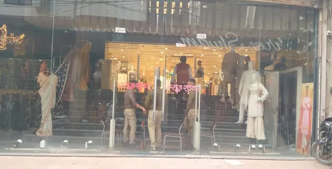 लालबंगला स्थित राज रतन साड़ी शोरूम (Saree Showroom) पर बुधवार को आयकर विभाग की टीम ने छापा मारा। इस कार्रवाई से आसपास के व्यापारियों में हड़कंप मच गया और दुकान के बाहर लोगों की भीड़ जमा हो गई।