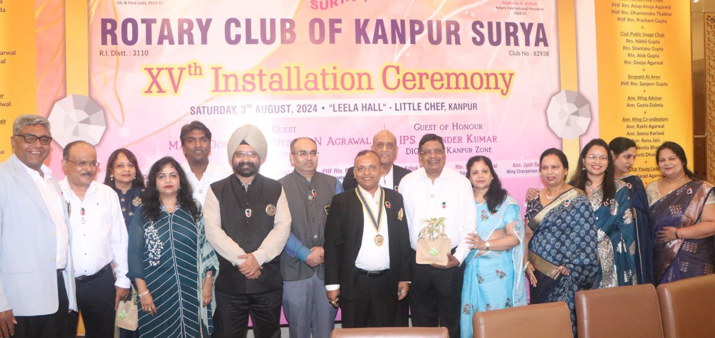 KANPUR NEWS : रोटरी क्लब (Rotary Club) कानपुर सूर्या की 15 वी वर्षगांठ सिविल लाइन्स स्थित एक होटल में सम्पन हुई । कार्यक्रम में मुख्य अतिथि नीरव एन अग्रवाल डिस्ट्रिक्ट गवर्नर 3110 और गेस्ट ऑफ ऑनर डी आई जी कानपुर रेंज जोगेंद्र कुमार आई पी एस थे।
