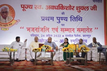 स्व. अवधकिशोर शुक्ल के कार्यों को आगे बढ़ाने के संकल्प के साथ गठित अवध स्मृति मंच के तत्वाधान में प्रथम पुण्यतिथि पर भजनांजलि एवं अवध स्मृति सम्मान समारोह का भव्य और गरिमामयी आयोजन एस्सेल पैलेस में सम्पन्न हुआ ।