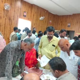 उत्तर प्रदेश में निकाय चुनाव (Uttar Pradesh municipal elections 2023) का बिगुल बज गया है। दूसरे चरण के नामांकन को लेकर नामांकन पत्र की बिक्री शुरू हो गई है। कानपुर (KANPUR) के नगर निगम (Municipal Council) स्थित प्रमिला सभागार में नामांकन पत्र लेने पहुंचे प्रत्याशियों को परेशानी का सामना करना पडा। पहले दिन अधिकारियों को असमंजस के चलते करीब 1 बजे बिक्री शुरू हो सकी। इसके चलते प्रत्याशियों ने नाराजगी जताई। नगर निगम और बिठूर पंचायत (Panchayat Bithoor) के लिए नामांकन पत्रों की बिक्री प्रमिला सभागार में की जा रही है। पहले दिन बड़ी संख्या में नामांकन पत्र खरीदने के लिए लोग जुटे हैं। प्रत्याशियों को लाइन में लगाकर नामांकन पत्र खरीदने पड़ रहे हैं। प्रत्याशियों ने हंगामा किया तो मौके पर उपस्थित उप जिला निर्वाचन अधिकारी ने लोगों को शांत करवाकर समस्या की जानकारी ली। लोगों की शिकायत पर तत्काल सभी आरओ को नामांकन कक्ष से सभागार में बुलाया गया। जिसके बाद बिक्री शुरू हो सकी। Uttar Pradesh municipal elections 2023